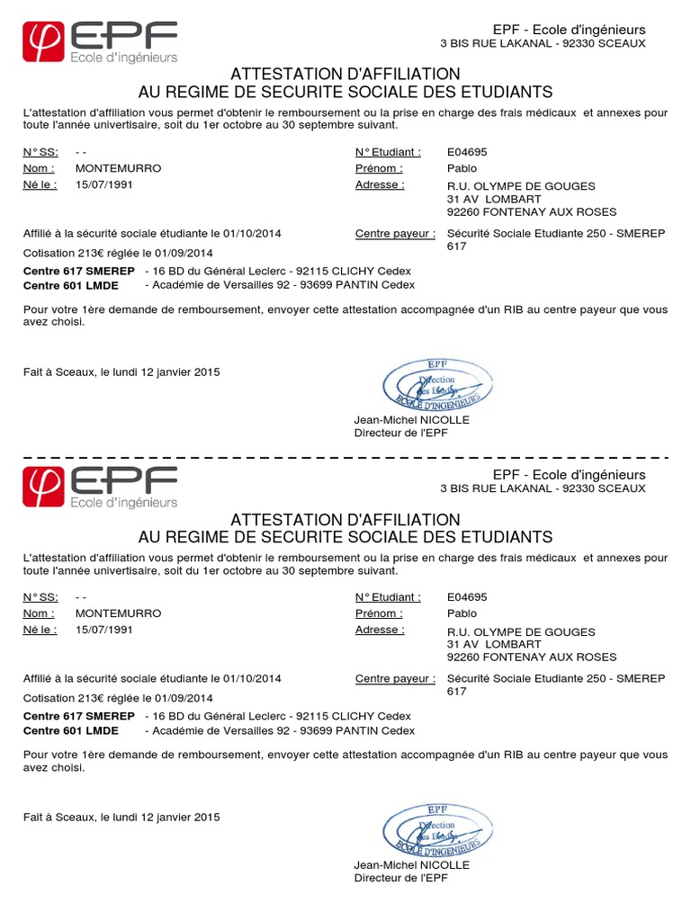 | Nom: | attestation sécurité sociale smerep gratuit |
